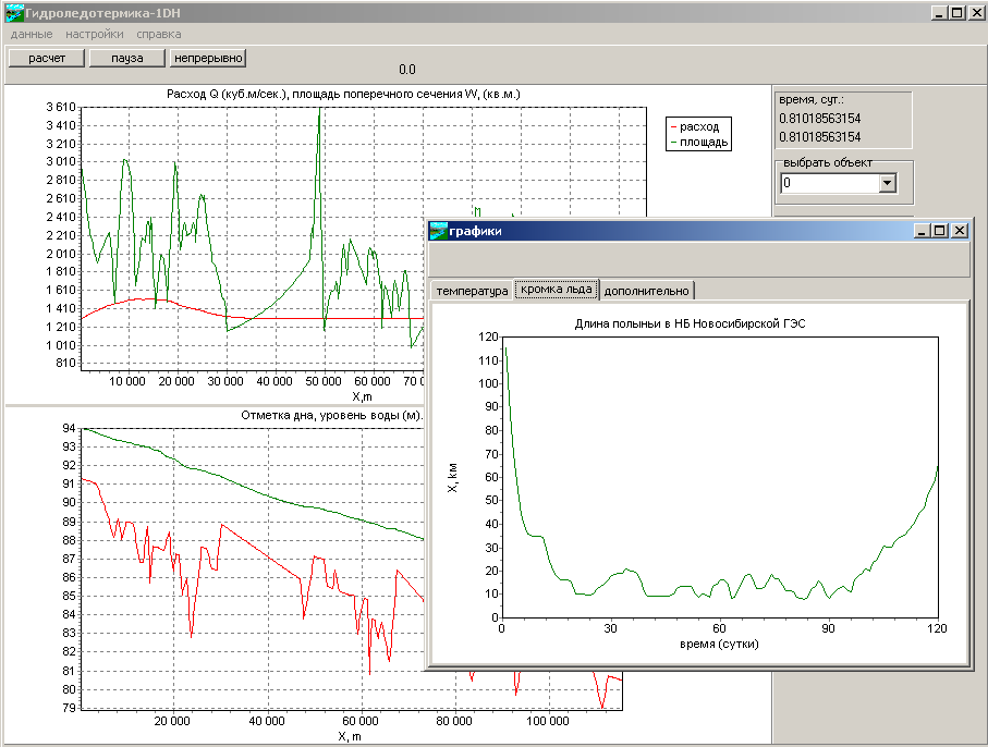 Пример работы программы Гидроледотермика -1DH (Полынья)